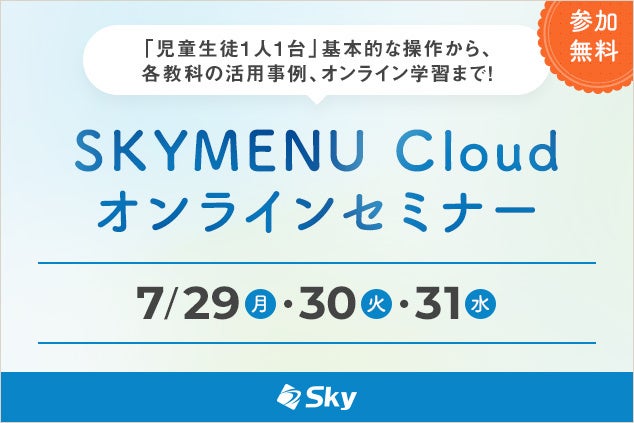 Sky株式会社では、児童生徒1人1台の学習活動端末支援Webシステム「SKYMENU Cloud」の基本的な使い方や教科指導、オンライン学習における活用例のご紹介など、毎月複数のテーマを設けてオンラインセミナーを開催しています。