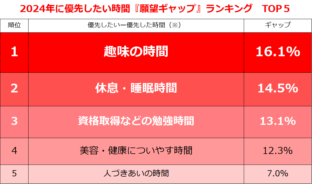 6.2024年に優先したい時間『願望ギャップ ※』/ランキングTOP5