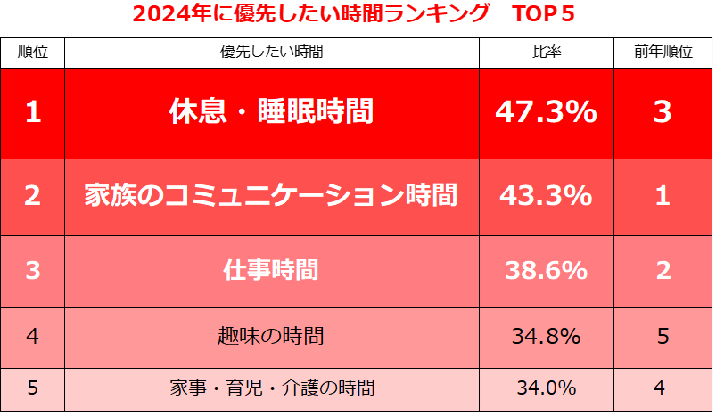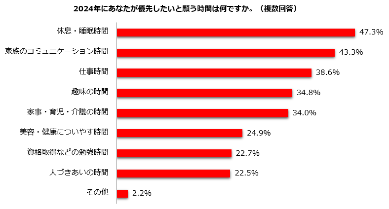 3.2024年に優先したい時間 1位「休息・睡眠時間」47.3%