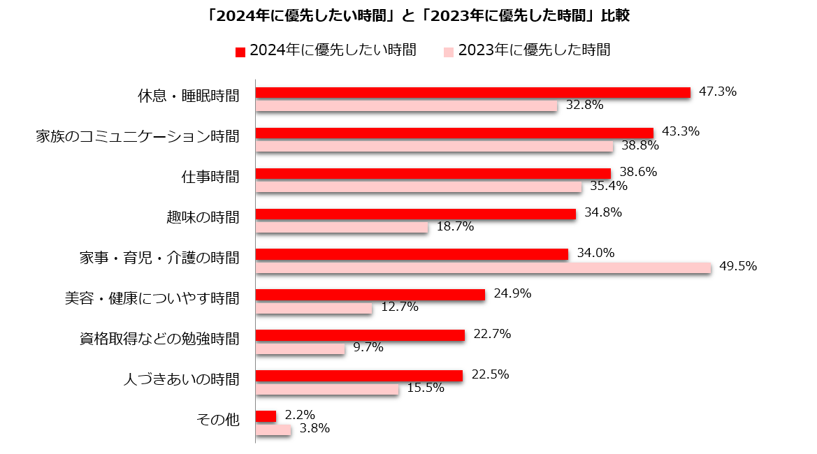 5.「2024年に優先したい時間」と「2023年に優先した時間」比較