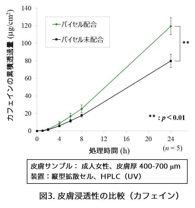 3. ナチュラルバイセル配合モデル化粧水の浸透効果