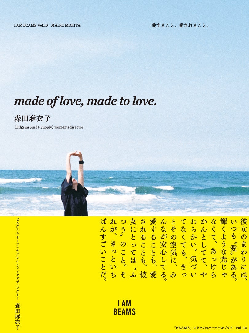 株式会社ビームス(本社:東京都渋谷区、代表取締役社長:設楽洋)は、ファッションやライフスタイルに深いこだわりをもつビームススタッフ個人の魅力を一冊の本にしたパーソナル・ブックシリーズ『I AM BEAMS』のVol.10として、〈Pilgrim Surf+Supply〉のウィメンズディレクター・森田麻衣子の『made of love, made to love. 愛すること、愛されること。』をビームスの一部店舗とビームス公式オンラインショップ、全国の書店、Amazon他ネット書店にて2025年11月3日(月・祝)より順次発売します。