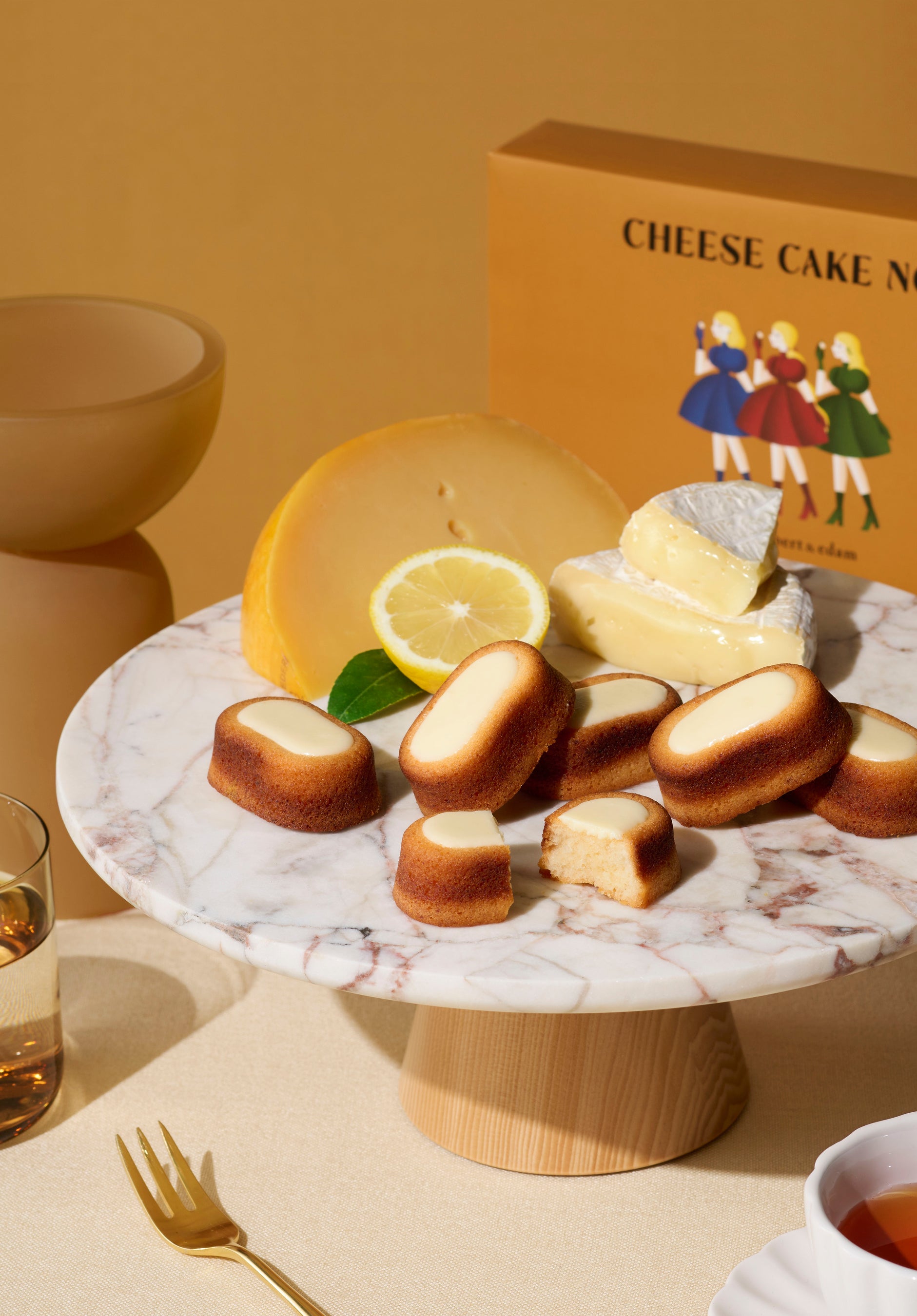 クラシックなチーズケーキを焼き菓子にしたイメージでつくったスイーツは、かわいらしいフォルムのお菓子に。