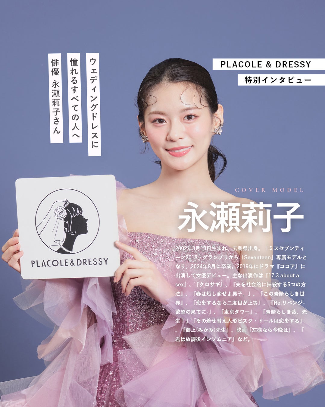 俳優 永瀬莉子さんが『PLACOLE&DRESSY』にウェディングドレス姿で初登場!ウェディングドレスに憧れるすべての人へのメッセージとは