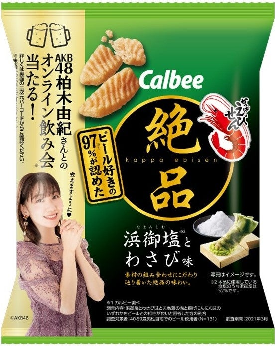 対象商品の「絶品かっぱえびせん」を3袋購入して、「カルビー ルビープログラム」にて応募すると、幅広い人気を誇るAKB48の柏木由紀さんとのオンライン飲み会が、900名様に当たるキャンペーンを実施します。
