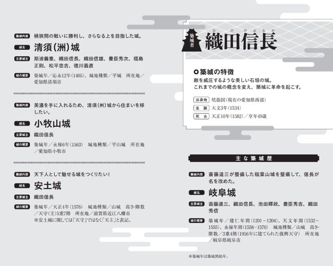 武将ごとの築城の特徴や、主な築城歴をまとめた特別ページも収録!