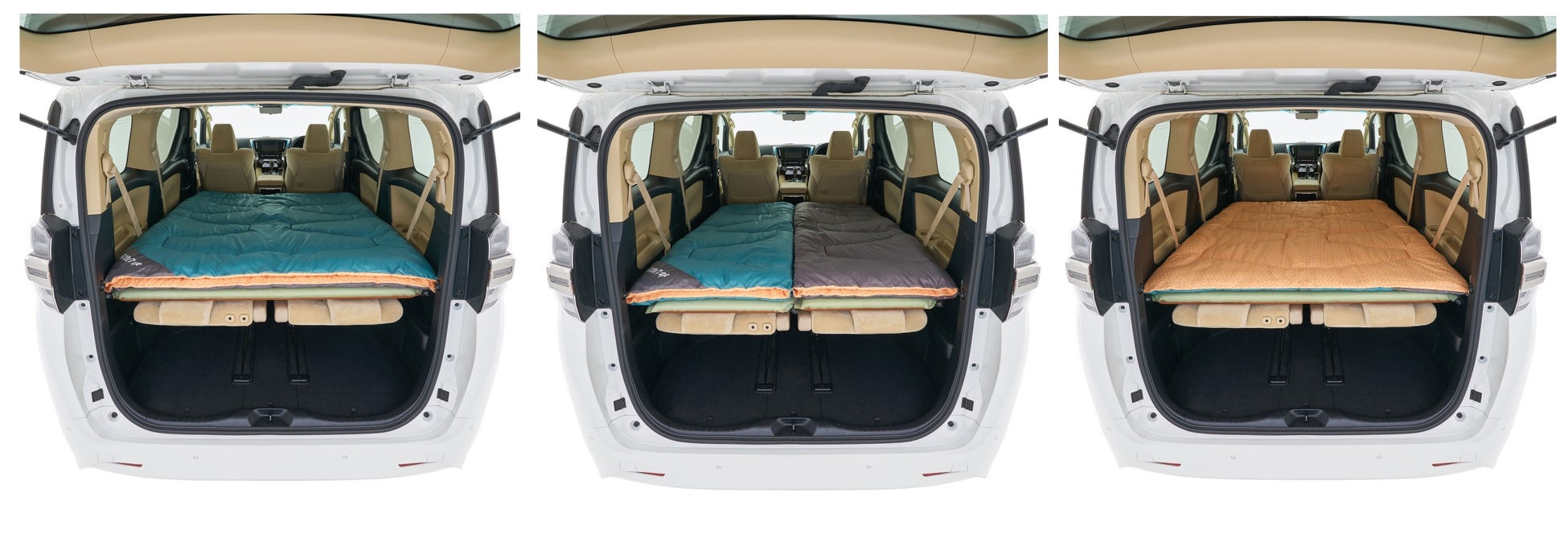 ミニバンの室内サイズにぴったりサイズの設計。分離して2つの寝袋としても、車内の敷物としても使用可能。