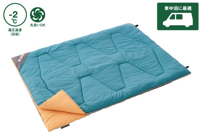 今回ピックアップする「ミニバンピッタリ寝袋・-2 BD」は、適正温度が-2℃までの、寒くなるこれからのアウトドアシーンに最適な寝袋です。ミニバンの室内にジャストフィットするサイズ設計で車中泊にぴったりなほか、キャンプシーンではダブルサイズの寝袋としても活躍します。分離すれば2つの寝袋として使用可能なため、1人ずつ寝袋で寝ることもでき、様々な使用シーンに対応します。敷物として車内に敷けばより快適な車内空間を演出できるうえ、付属の収納袋に入れるとクッションとして使うこともできるため、車内に常備しておくとたいへん便利です。
