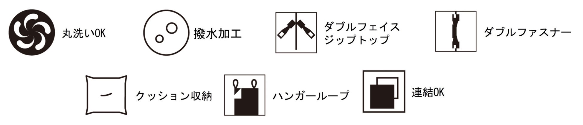 2個のジップスライダーが、ダブルフェイスジップトップになっているので、内側、外側どちらからでも開閉が可能で、温度調節もラクラク。さらにハンガーループ付きで陰干しするのも簡単。