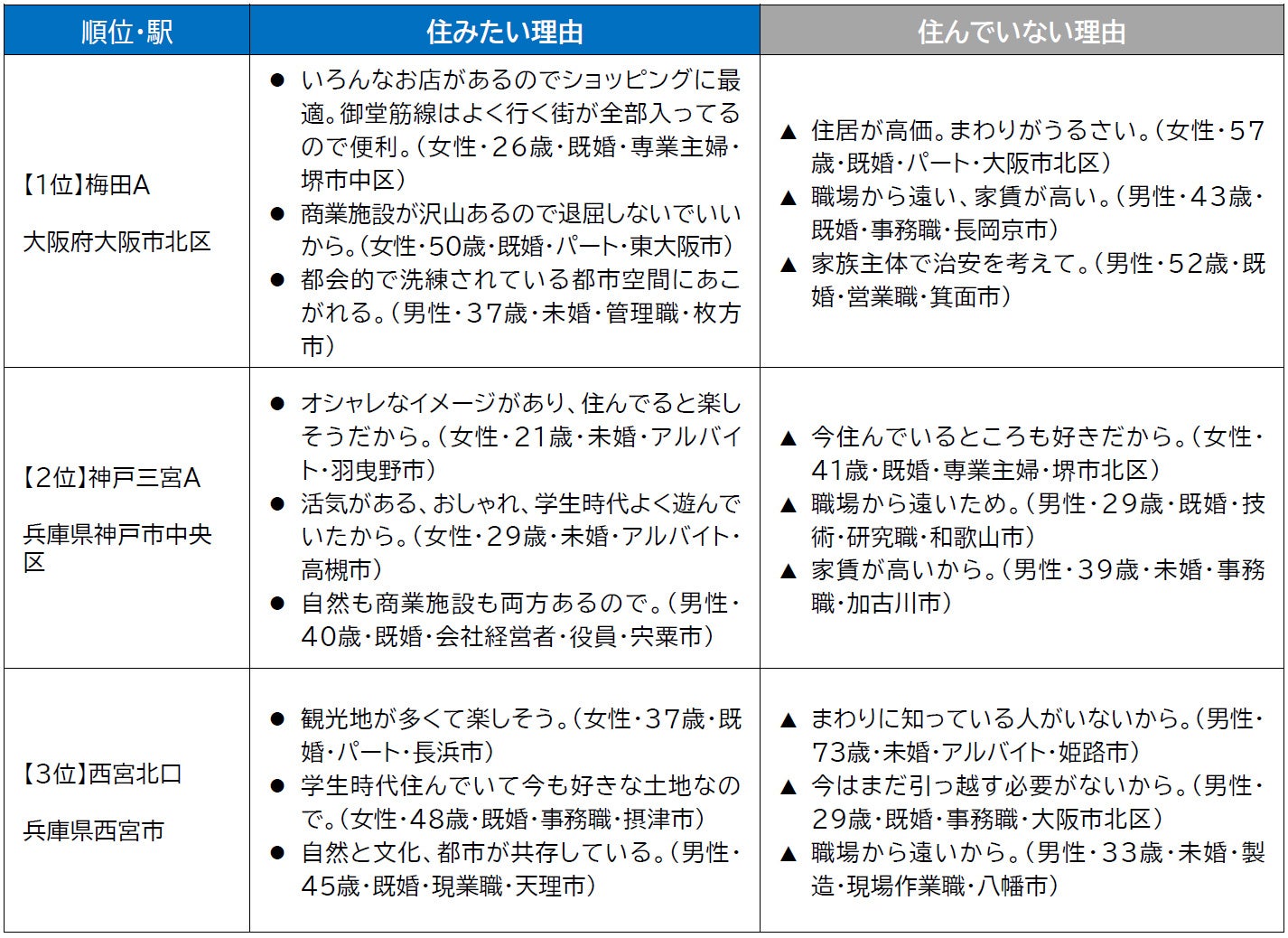 •住みたい街(駅)ランキングは、関西居住者の2023年回答を関西内の駅を対象としてランキングを集計しています。住みたい街(自治体)は、関西居住者の2023年回答を全国の自治体を対象としてランキングを集計しています。
