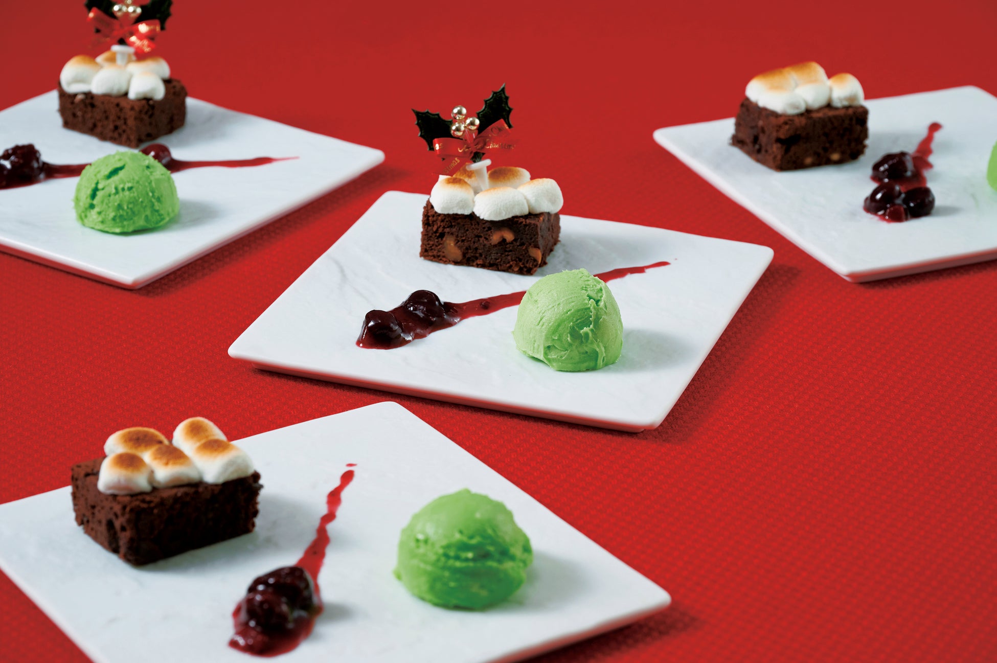 ・温かいチョコレートブラウニーと焼きマシュマロ 抹茶のアイス