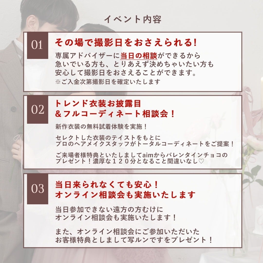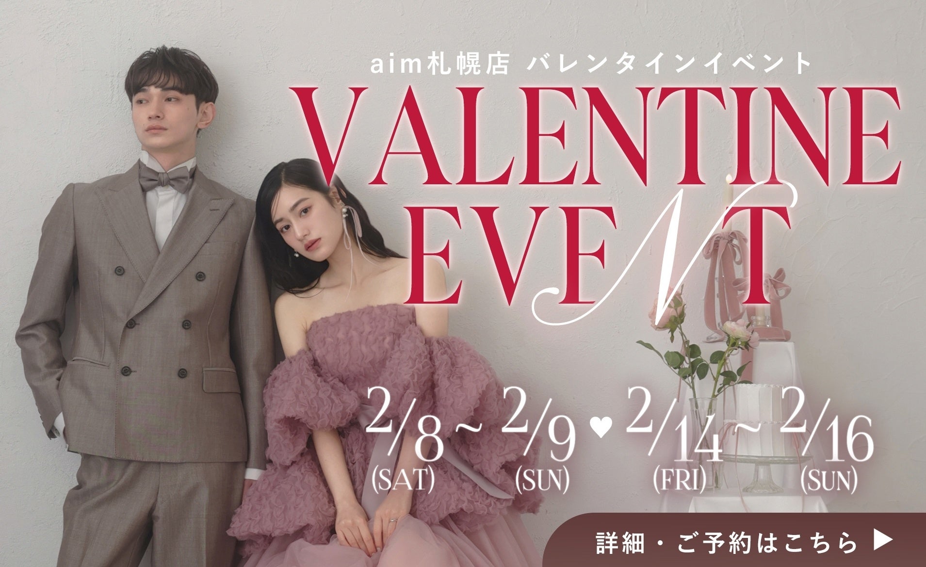 この度、aim札幌店にて冬にエンゲージメントフォトやウェディングフォトを検討されている方へ向けて、バレンタインイベントの開催が決定しました。