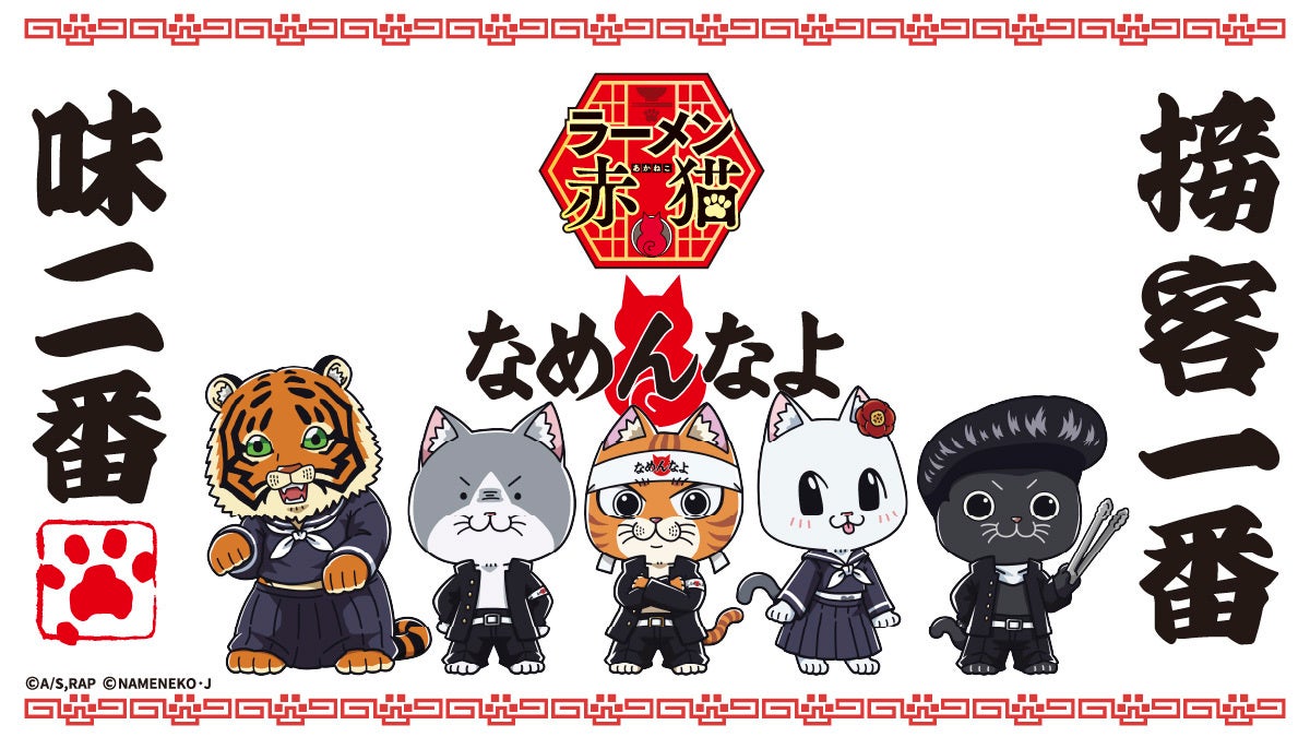 1980年代初頭の名古屋生まれ、暴走族風の身なりをした猫のキャラクターなめ猫とジャンプ+(集英社)にて連載中のアンギャマン先生による人気漫画を原作としたTVアニメ『ラーメン赤猫』が驚きのコラボ!