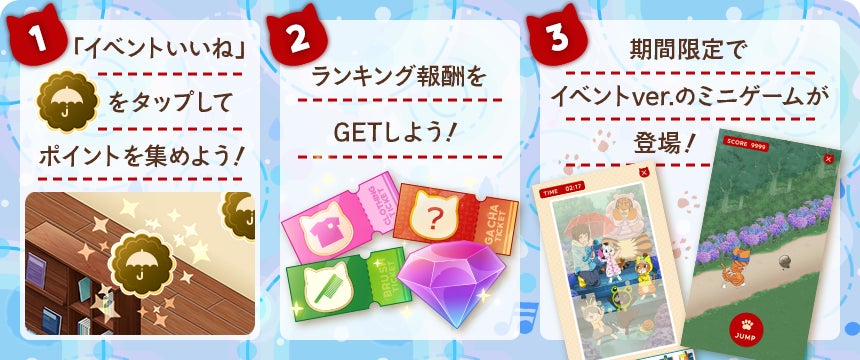 『ニャンステ』では、ゲーム内イベント「雨音はずむ!雫の音楽会」を開催中です!