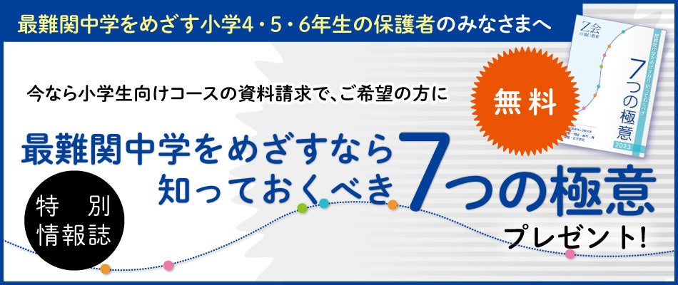 『最難関中学をめざすなら知っておくべき7つの極意』は、Z会の資料をご請求された方にプレゼントしています。Z会小学生向けコースの学年別おためし教材もごいっしょにお届けしますので、ぜひあわせてご覧ください。