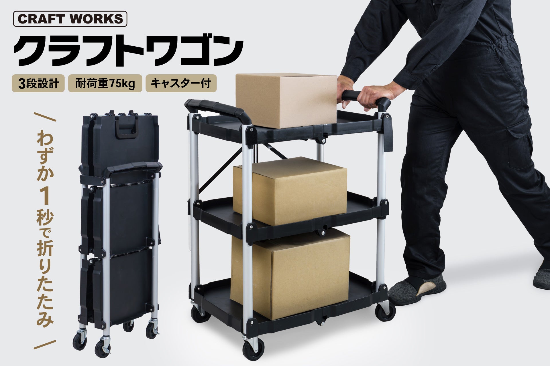 【Amazonベストセラー受賞】3段設計ツールワゴン「クラフトワゴン」現場の不便を全て解決!重い荷物もスムーズに運べる運搬性能と、移動も固定も快適な万能キャスターで作業性向上。