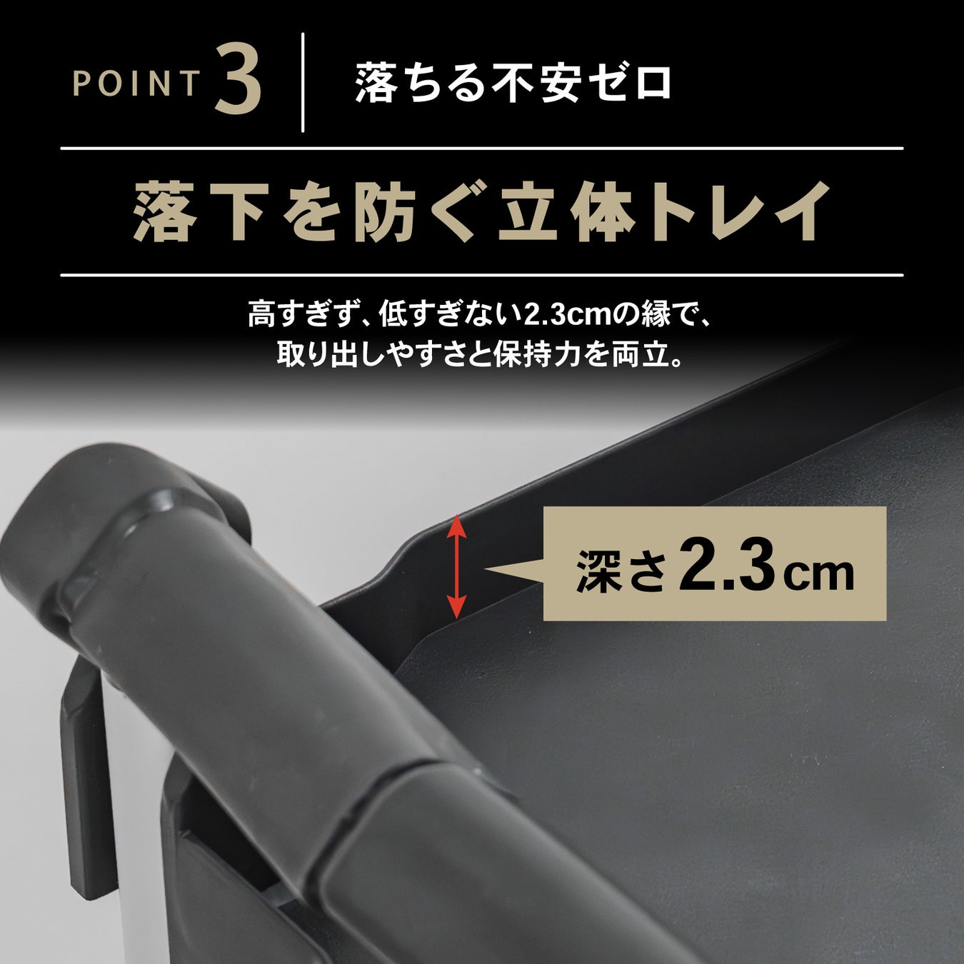 高すぎず、低すぎない縁で、取り出しやすさと保持力を両立。