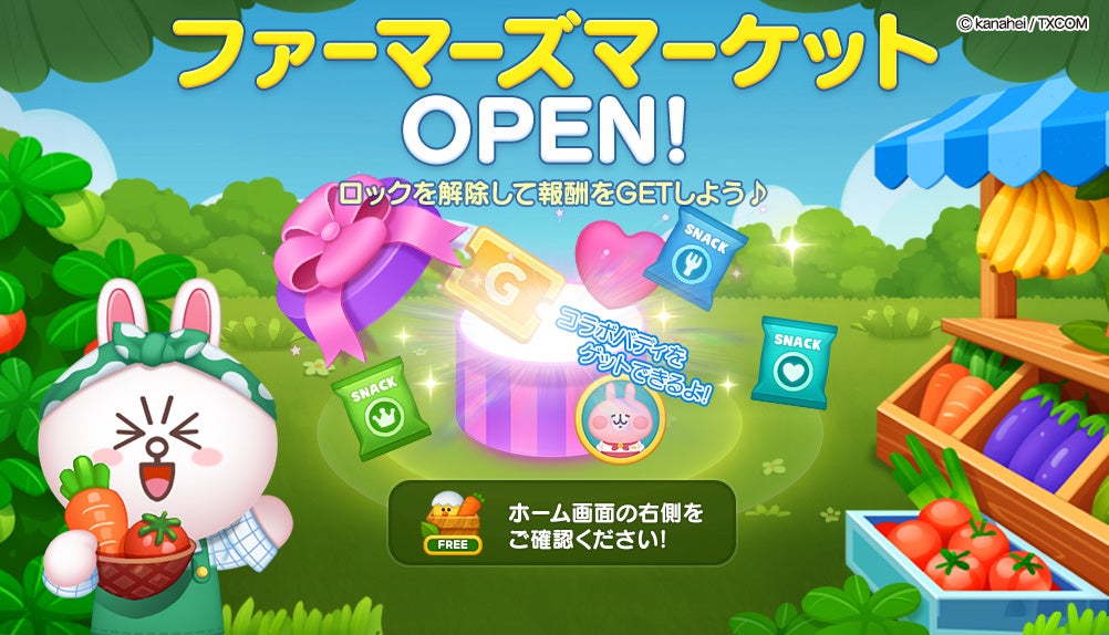 コラボを記念して『カナヘイの小動物』コラボバディ「シェフうさぎ」「シェフピスケ」がもらえるランダムボックスをファーマーズマーケットで配布します。