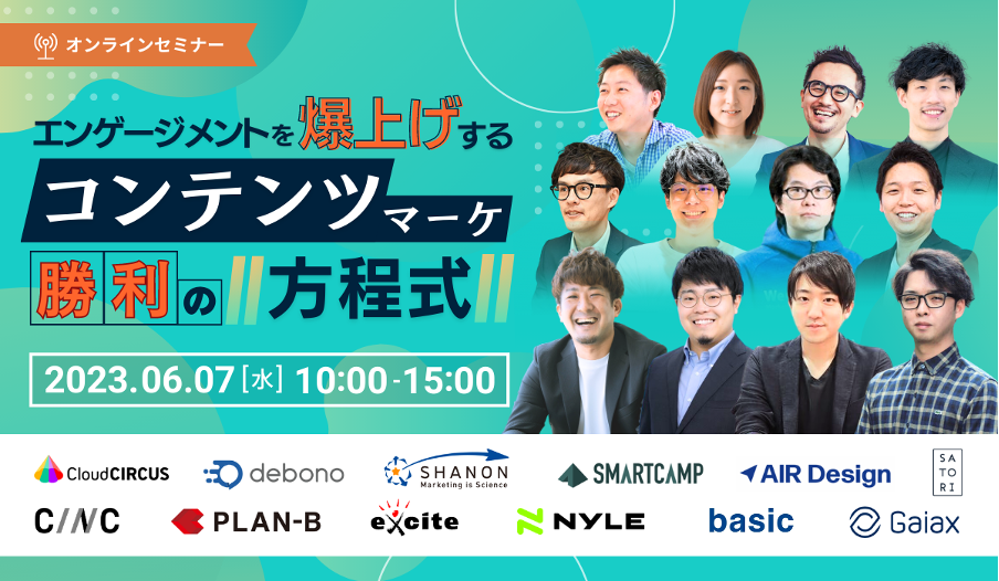 今回はマーケティングスペシャリストの企業12社をお招きし、顧客のエンゲージメントを爆上げするためのコンテンツマーケティングの勝ちパターンについてお話しいただきます。