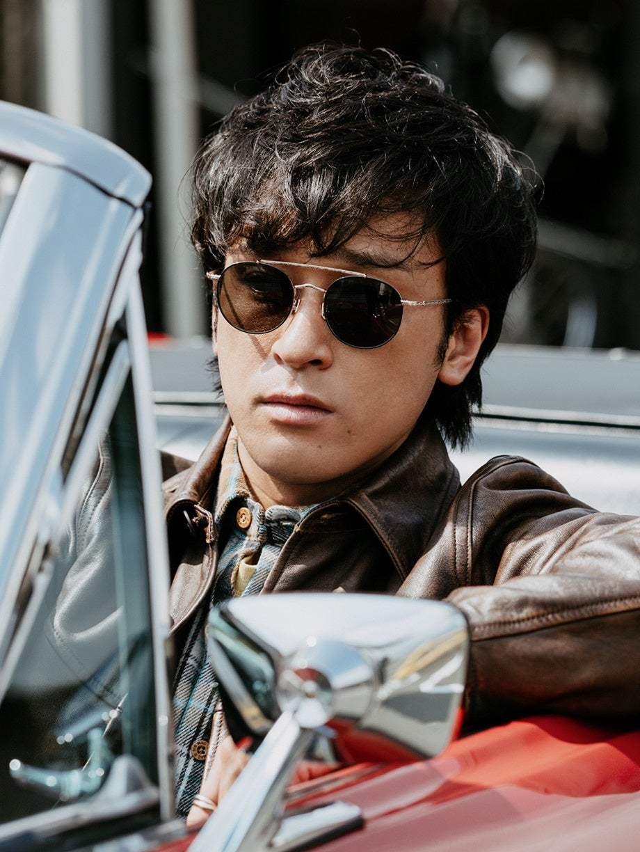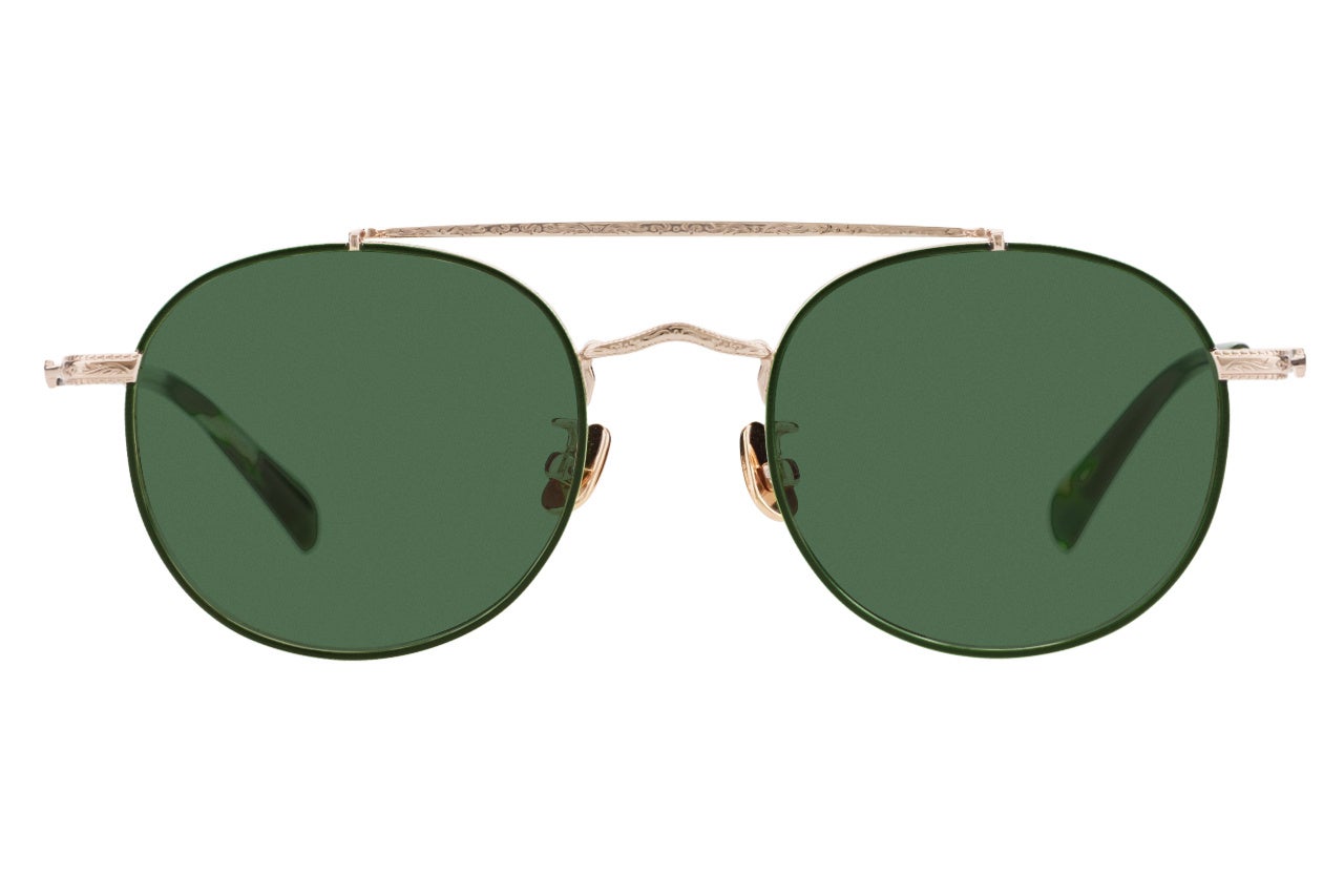 昔のアメリカ映画に出てくるようなツーブリッジタイプのサングラス。彫金も盛り沢山で「格好良い」が詰まったデザイン。