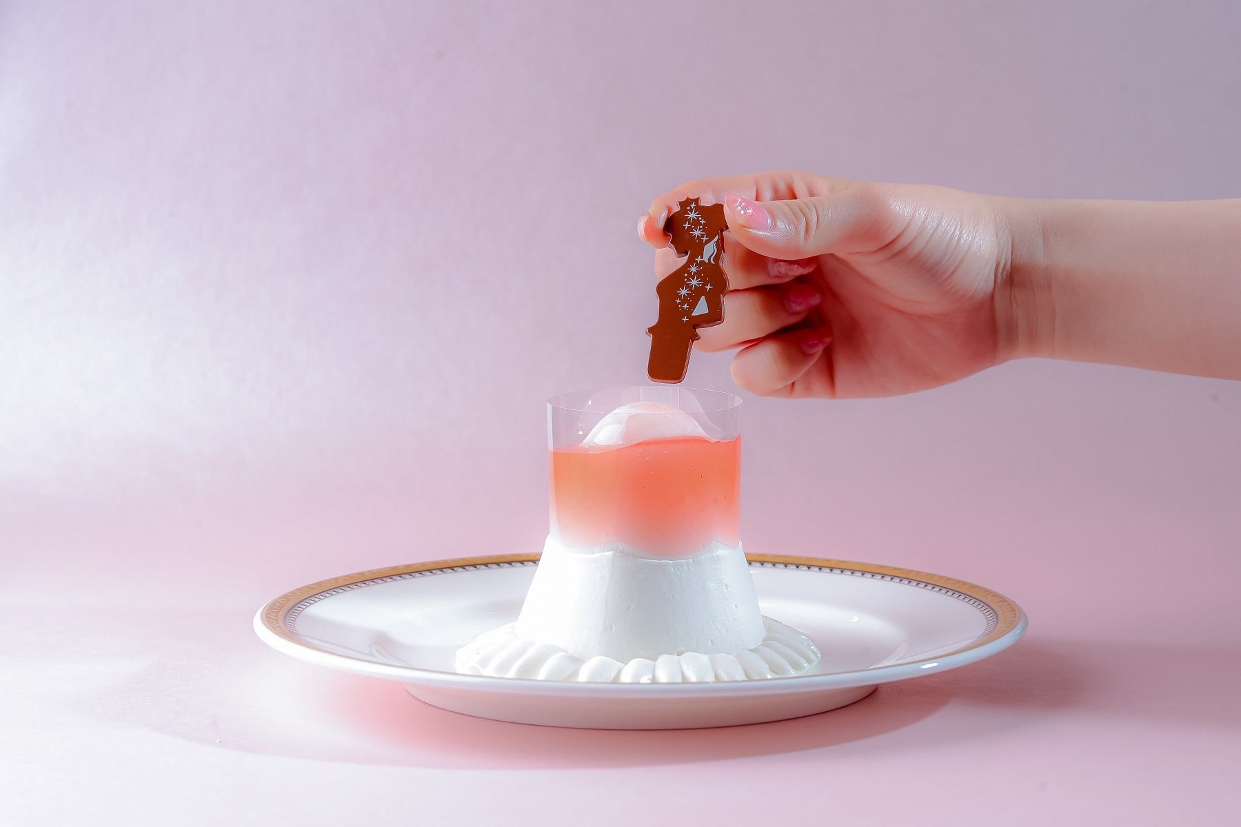 サークル状のシートをドレス型のショートケーキ(ドレス土台)に被せ、シート内にベリーソースを流し込み、