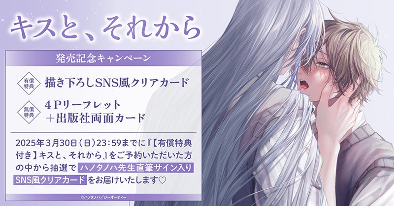直筆サイン入りクリアカードが当たる!ハノタノハ先生『キスと、それから』発売記念キャンペーン開催!【ホーリンラブブックス】