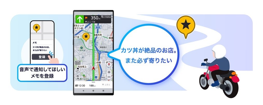 ~ライダー向けナビ機能やおすすめスポットなどの充実した音声情報で、快適なツーリングをサポート~