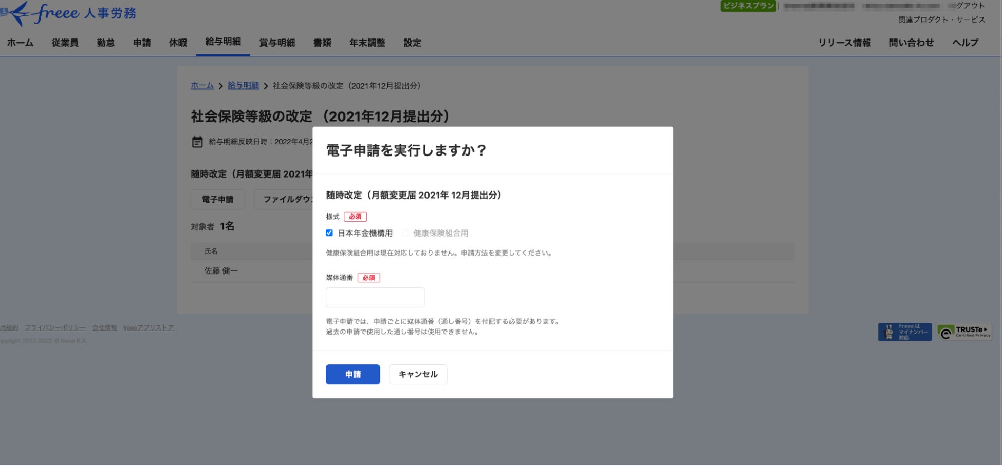 freee人事労務、月額変更届と算定基礎届の電子申請が可能に