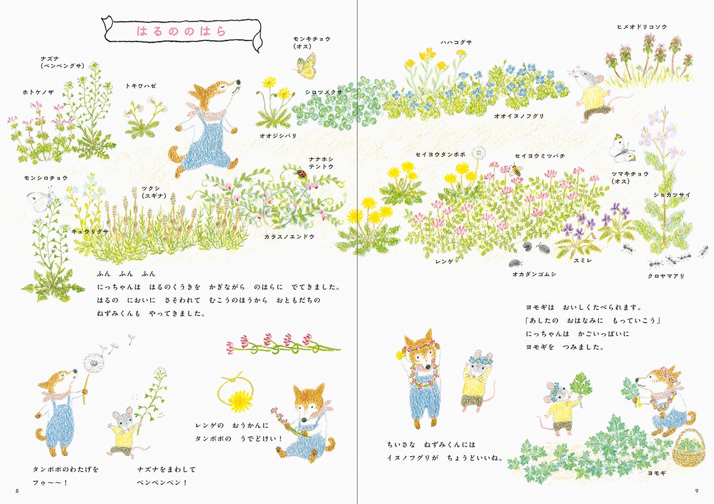 花が咲きみだれ、たくさんの生き物たちがいきいきと活動する春から夏の季節には、自然のドラマがいっぱい! いぬのにっちゃんやねずみくんと一緒に、身近な自然を思いきり楽しもう! 巻末に、植物や生き物の豆知識を解説した図鑑さくいん付き。おもしろい自然の知識がいっぱいの自然観察絵本です。