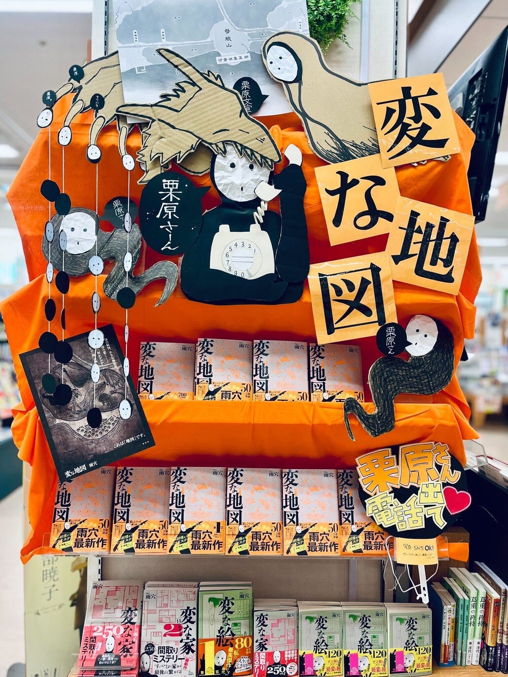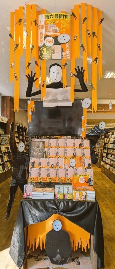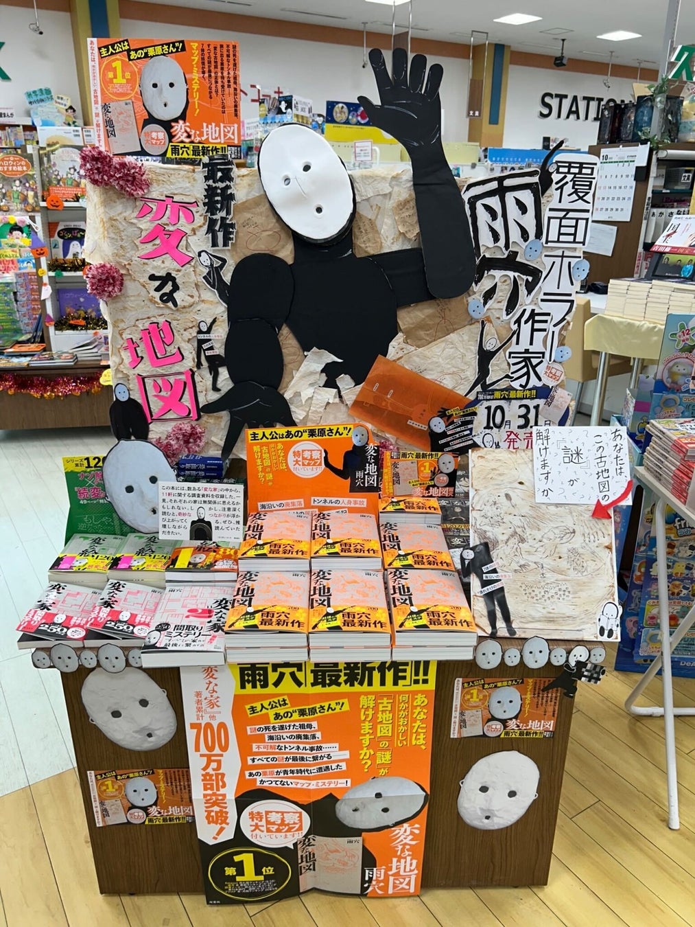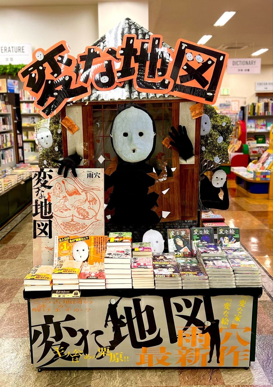 中でも、「『変な地図』公式アカウント」が紹介した紀伊國屋書店 西武東戸塚S.C.店の“超超巨人・雨穴ディスプレイ”は、「全力応援!! 栗原青年!!!」とのメッセージとともに大反響を呼び、投稿には6万超の「いいね」が集まった。その他、全国の書店員が自ら制作した「雨穴と超巨大な古地図」「雨穴時計」「雨穴お面」など、創意あふれる“変な展示”が次々と誕生している。実際にこれらのディスプレイに足を止め、購入に至る読者も多く、雨穴と『変な地図』への情熱があふれた力作が並ぶ。