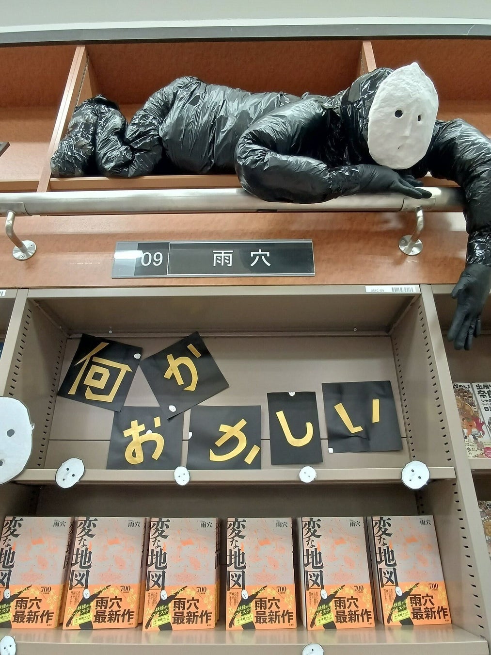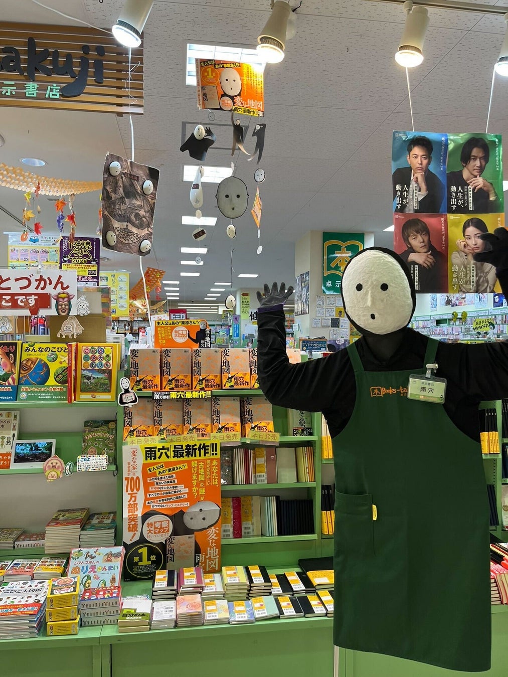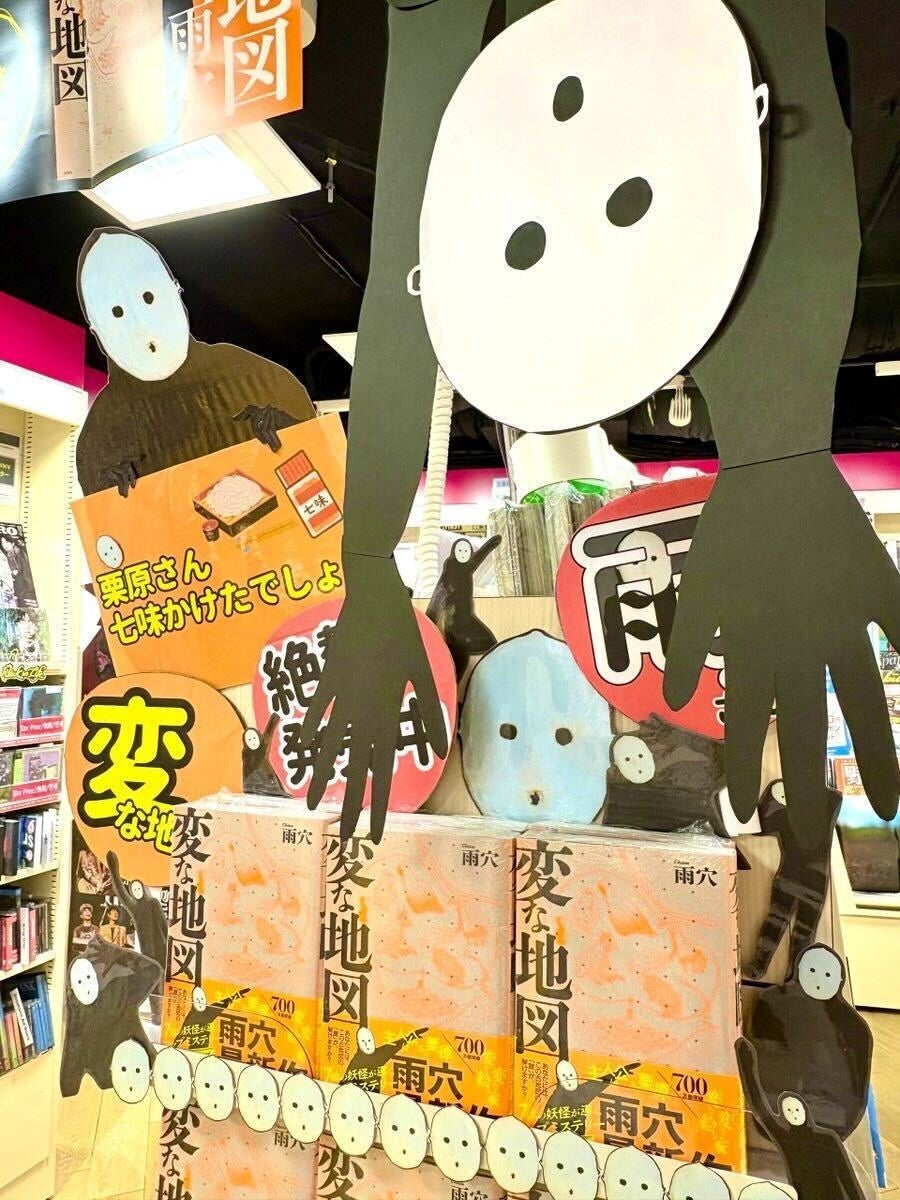 中でも、「『変な地図』公式アカウント」が紹介した紀伊國屋書店 西武東戸塚S.C.店の“超超巨人・雨穴ディスプレイ”は、「全力応援!! 栗原青年!!!」とのメッセージとともに大反響を呼び、投稿には6万超の「いいね」が集まった。その他、全国の書店員が自ら制作した「雨穴と超巨大な古地図」「雨穴時計」「雨穴お面」など、創意あふれる“変な展示”が次々と誕生している。実際にこれらのディスプレイに足を止め、購入に至る読者も多く、雨穴と『変な地図』への情熱があふれた力作が並ぶ。