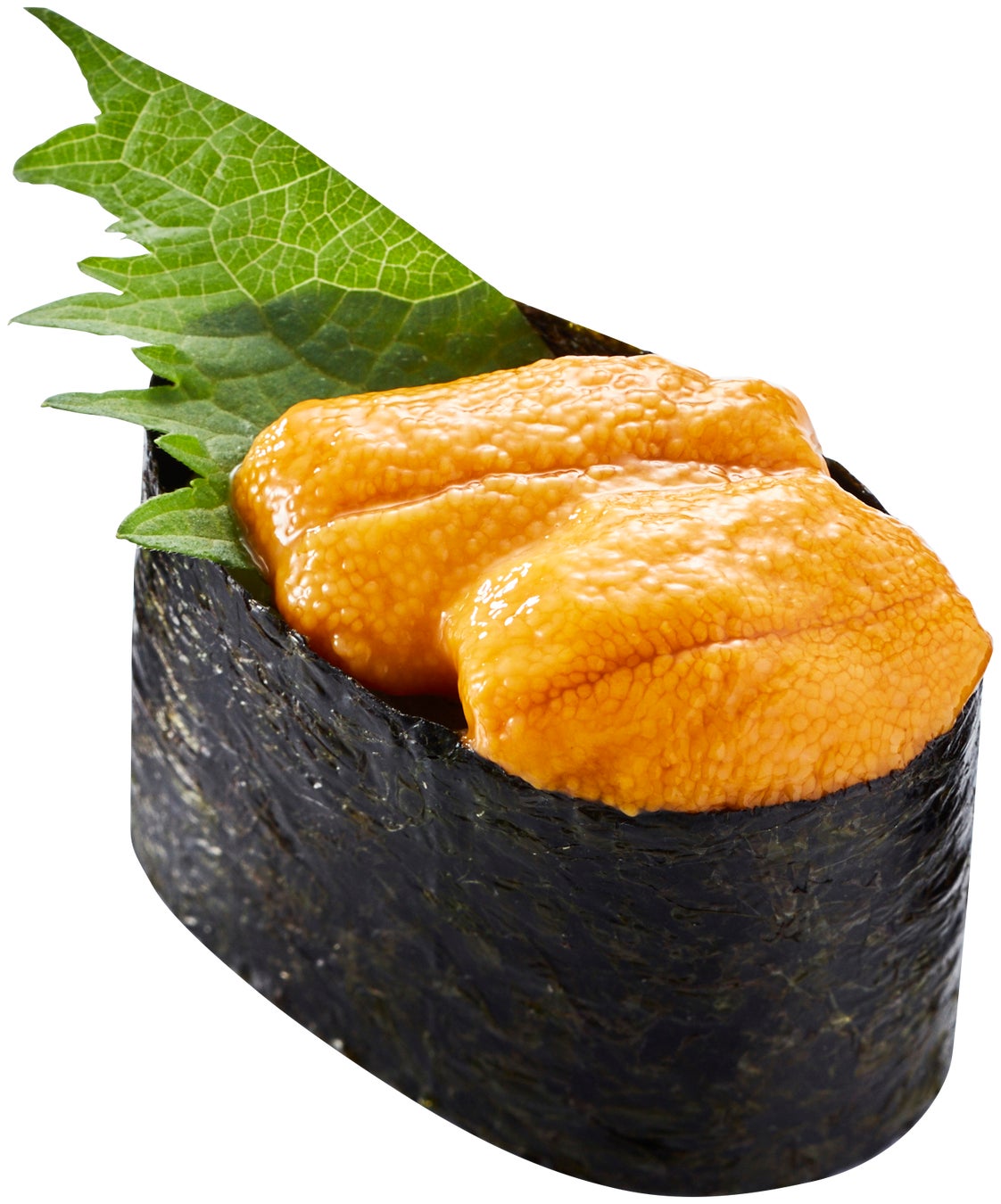 大葉をあしらい、うにの香りや味わいが一層引き立つ一品。