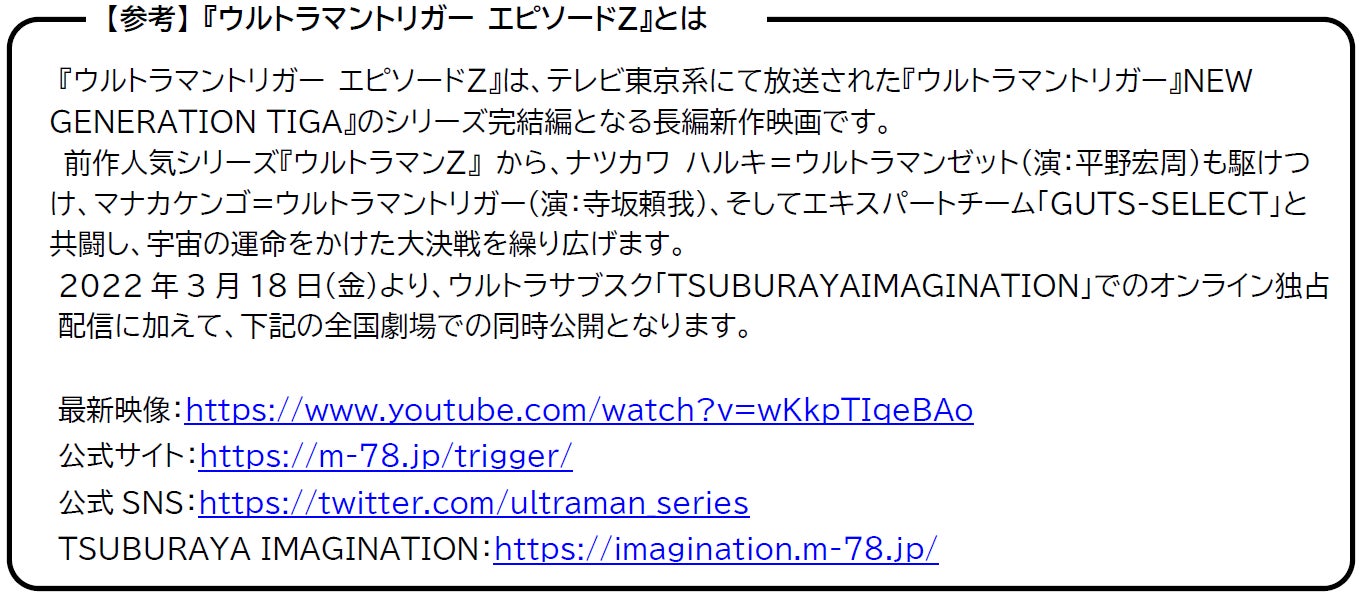 『ウルトラマントリガー エピソードZ』配信&公開記念