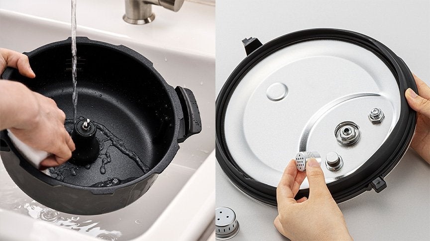 料理の後、面倒なのが後片付け。オートクッカー ビストロならお手入れパーツは内なべ、内ふた、羽根のたったの3点。取り外しもしやすく、内なべは洗いやすいフッ素加工。毎日使うものだから、お手入れのしやすさにもこだわりました。油跳ねもなく、キッチンのお手入れも楽になります。