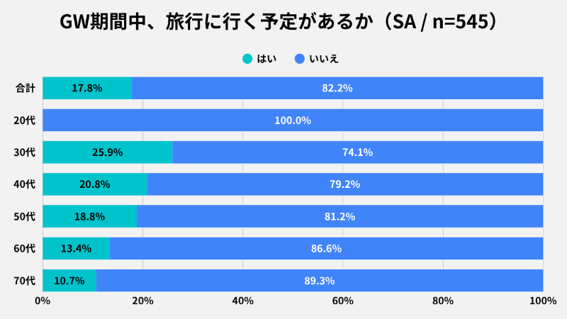 GW期間中、旅行に行く予定があるのか、年代別に調査。