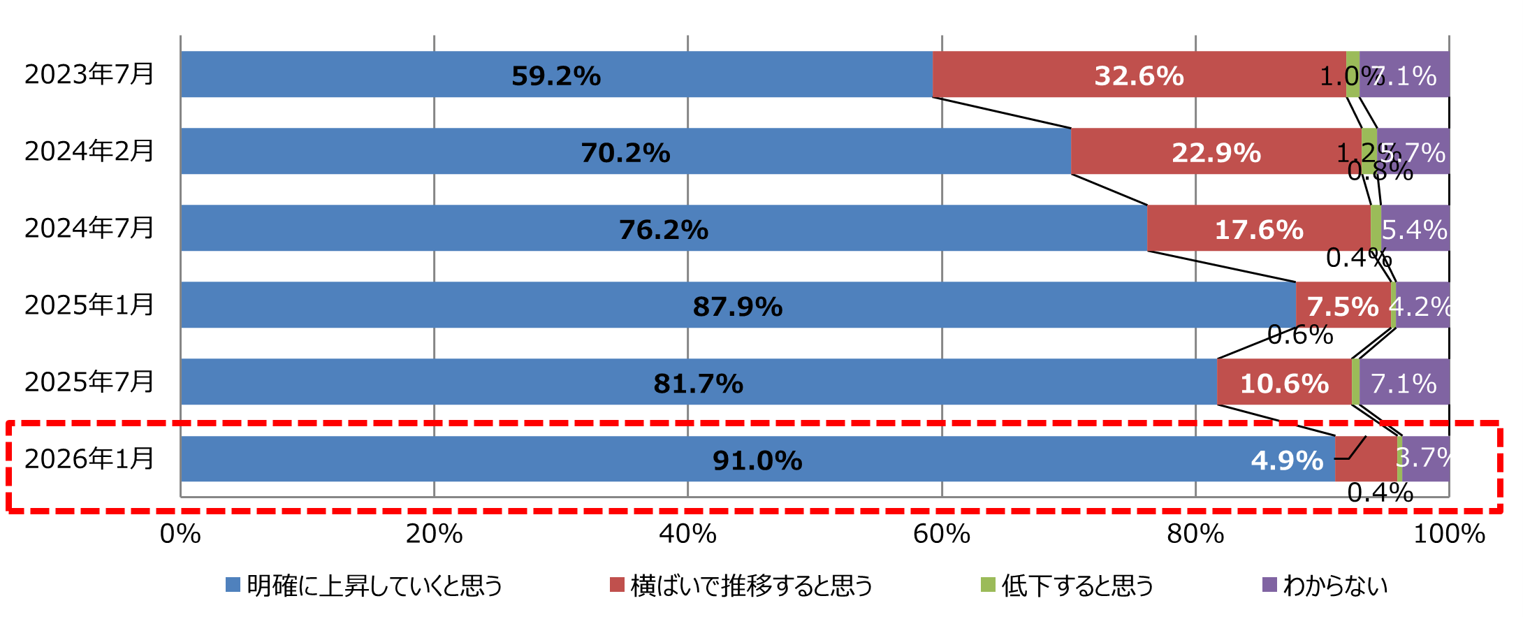 ― 住宅ローン金利は上昇するとの見方が一段と高まり、価格は「上がると思う」が継続 ―