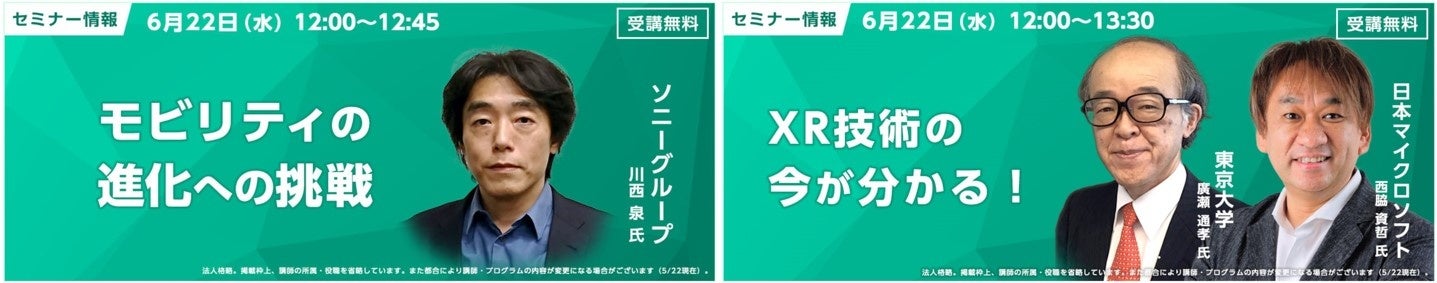 特別講演では トヨタ自動車が、事務部門の生産性向上、技術開発のリードタイム短縮にも効果を出したTPS(トヨタ生産方式)について紹介するほか、注目の集まる「ソニーのモビリティ開発」「XR技術・メタバースの最新動向」について業界の第一人者から直接学べます。
