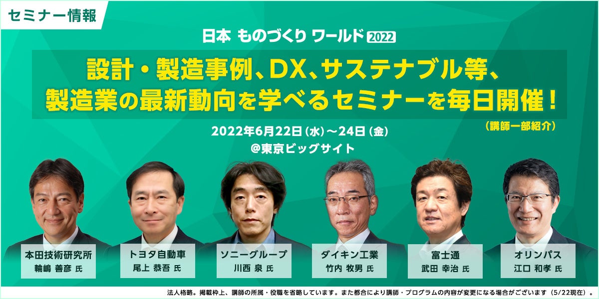 日本 ものづくり ワールド 2022 セミナー 会期:2022年6月22日[水]~24日[金] 会場:東京ビッグサイト