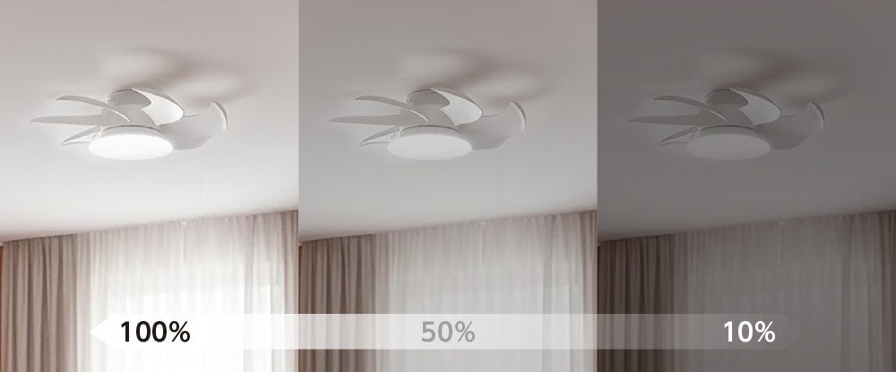 付属のリモコンで、風量は6段階に加えてターボモードを搭載し、室内の温度や環境に応じた風量調整が可能です。あわせて明るさは7段階、光の色は5段階で調整でき、お部屋の雰囲気やお好みに応じて快適な空間を演出します。