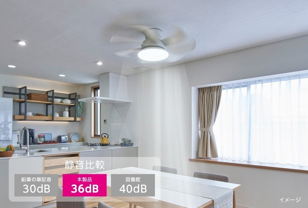 さらに、この羽根の構造により風切り音を抑制し、最大運転時でも約36dB※の静音性を両立しました。寝室など静かな環境でも快適に使用できます。