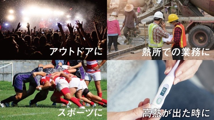 持ち運びに便利なポケットサイズで、アウトドアや仕事での暑さ対策、スポーツ時のアイシングや、熱さましなどサッと体を冷やしたい時に便利。また、保冷する必要がなく常温で使えるため、万が一の夏場の災害に備えて、防災備蓄品としてもおすすめ。