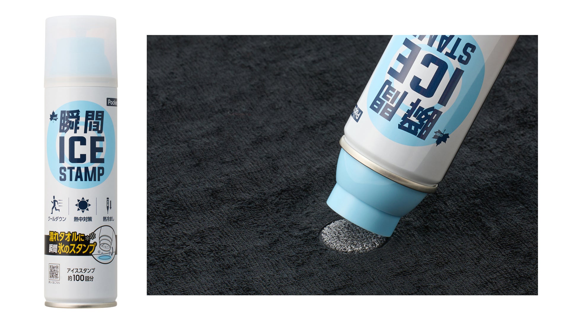 使い方は簡単で、濡らしたタオルやハンカチ等に、スタンプを直接当て1秒~3秒間プッシュするだけ。スタンプを当てた箇所が凍るので、冷やしたい箇所にタオルやハンカチを直接当ててアイシングやクールダウンができる。折りたたんでスタンプすると複数個所を凍結することも可能。本製品の成分は100%のLPGのみで、余計な化学物質が入っておらず、無香料で界面活性剤不使用のため、環境にもやさしく、お子様のいるご家庭でも安心して使用できる。環境にも肌にもやさしい「水だけでできた純粋な氷」ができる。