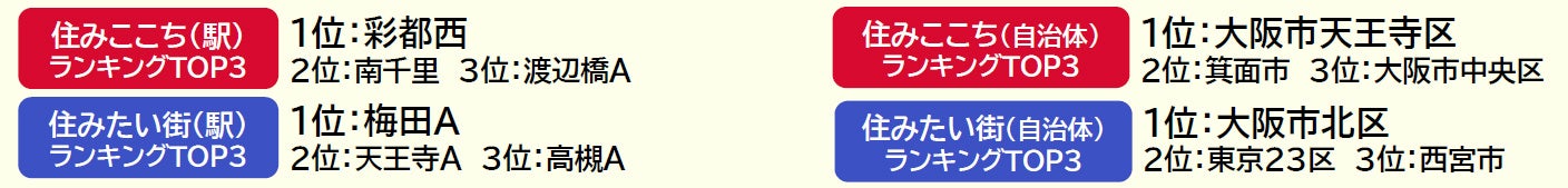 •新聞・雑誌、テレビ・ラジオ等の報道関係者におかれましては、本リリースを掲載・報道または引用する場合には、「いい部屋ネット 街の住みここちランキング&住みたい街ランキング2023<大阪府版>」と出所の表記をお願いします。