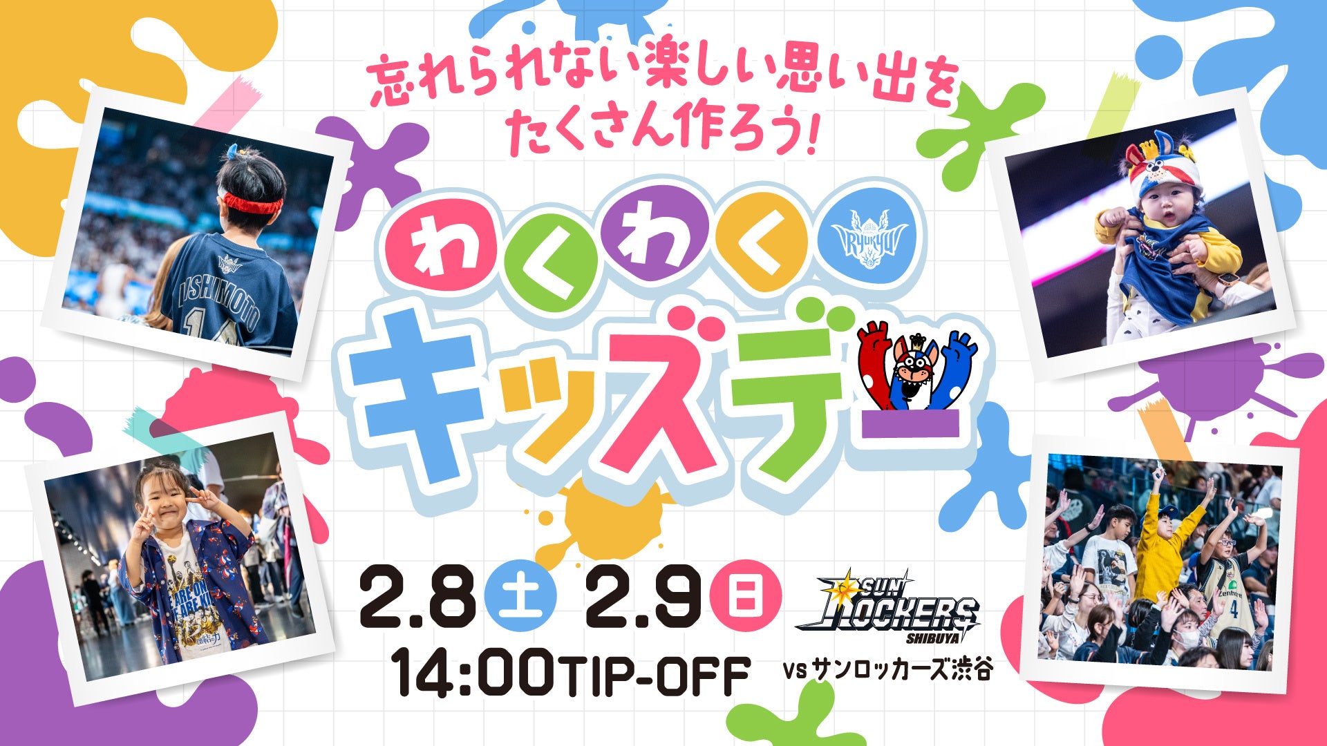 2月8日(土),2月9日(日)サンロッカーズ渋谷戦は、「わくわくキッズデー」!子どもたちの夢が詰まったわくわくするホームゲームのイベント盛りだくさん!ぜひ家族揃ってキングスホームゲームへお越しいただき、沖縄アリーナで楽しい1日をお過ごしください。