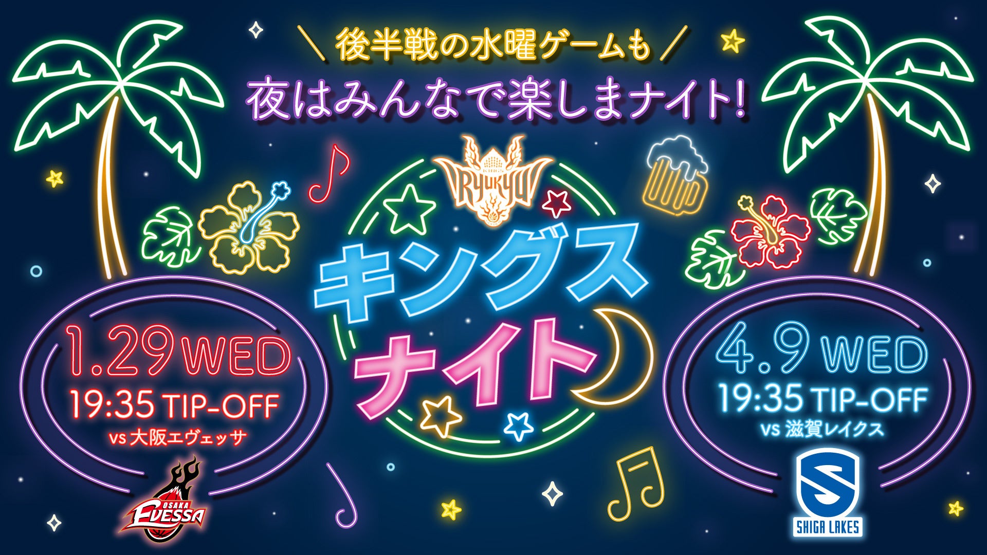1月29日(水)大阪エヴェッサ戦、4月9日(水)滋賀レイクス戦は、「キングスナイト」!お仕事帰り、学校帰りのナイトゲームも仕事仲間やお友達とキングス観戦をお楽しみください!
