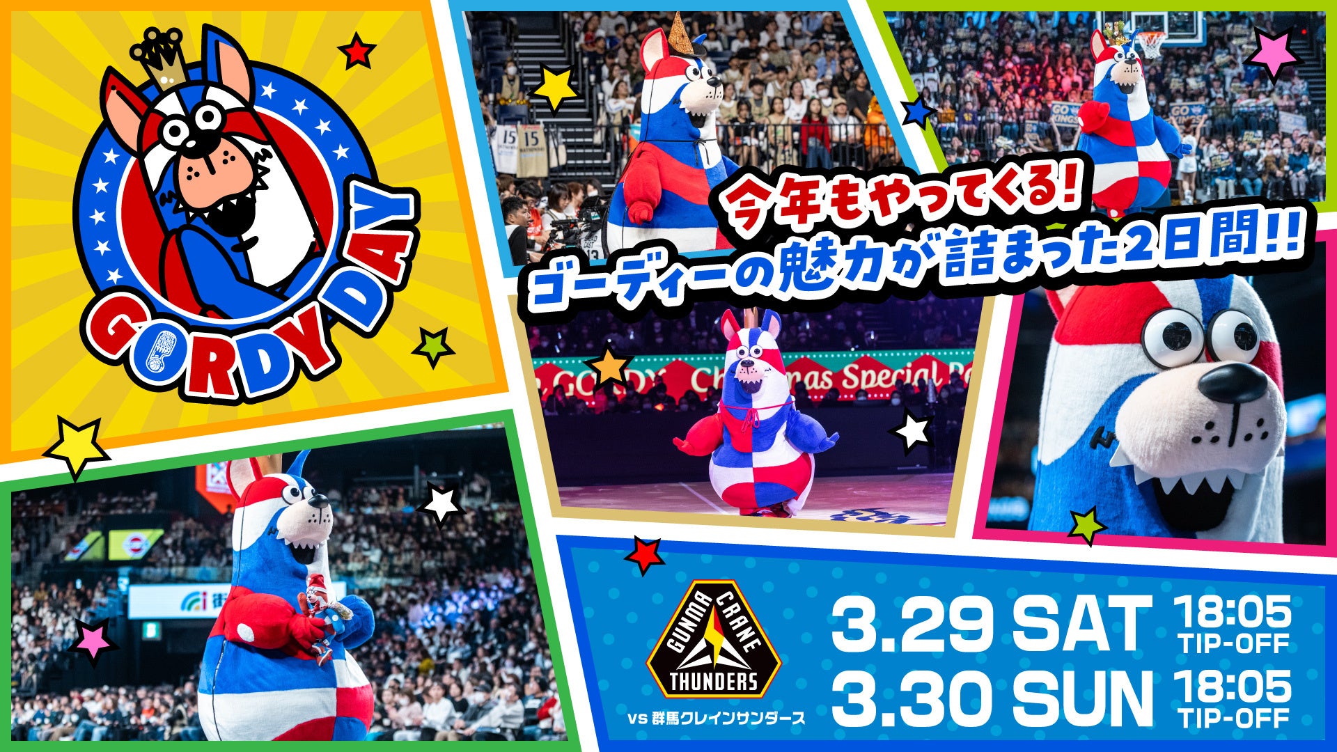 3月29日(土),3月30日(日)群馬クレインサンダース戦は、毎年大好評の「GORDY DAY」!キングスをいつも元気に盛り上げてくれているゴーディーが、さらにはりきって皆さまを楽しませてくれます!ゴーディーグッズを身につけて、GORDY DAYをお楽しみください!