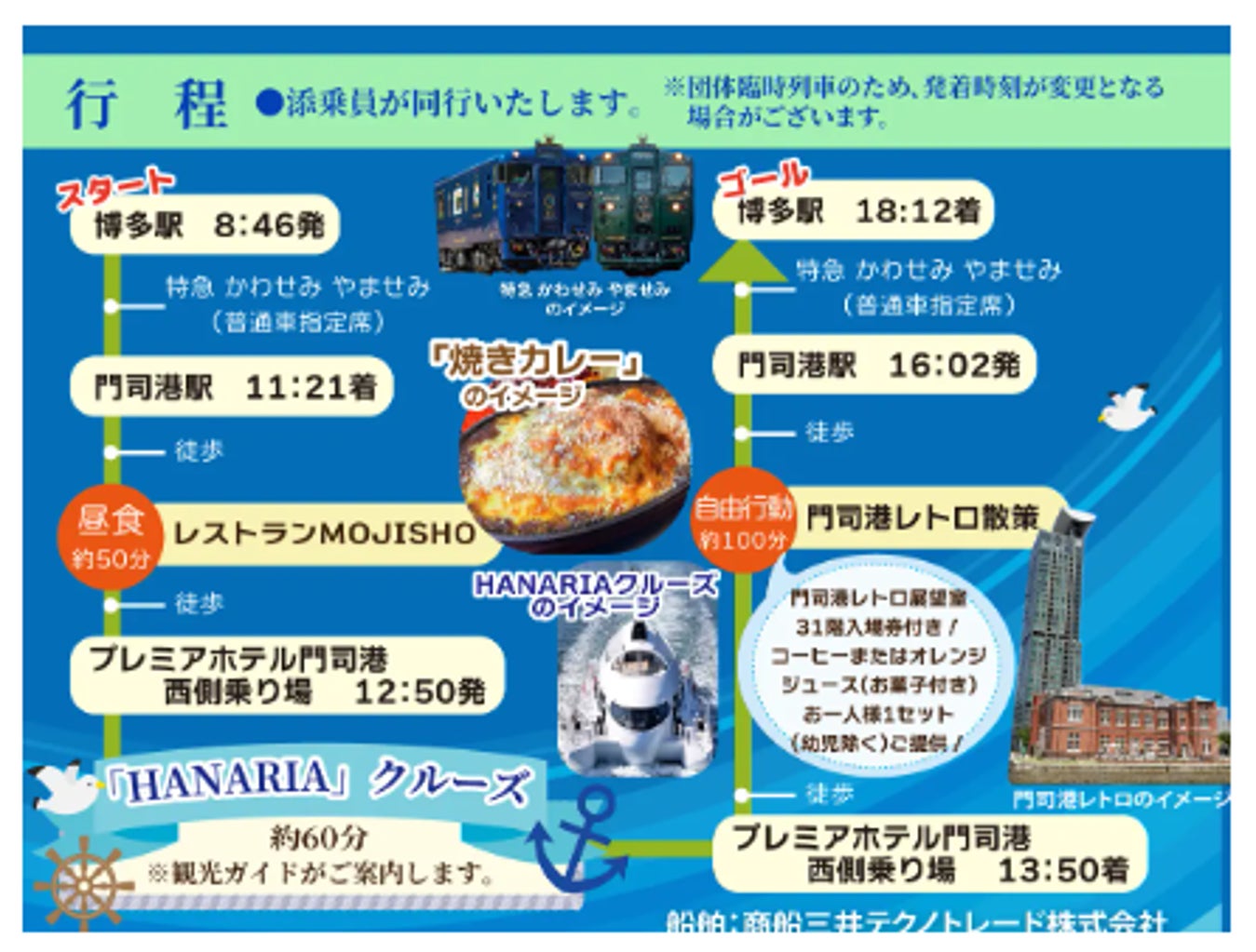 「特急 かわせみ やませみ」で行く!HANARIAクルーズ&門司港散策、ツアー発売中!