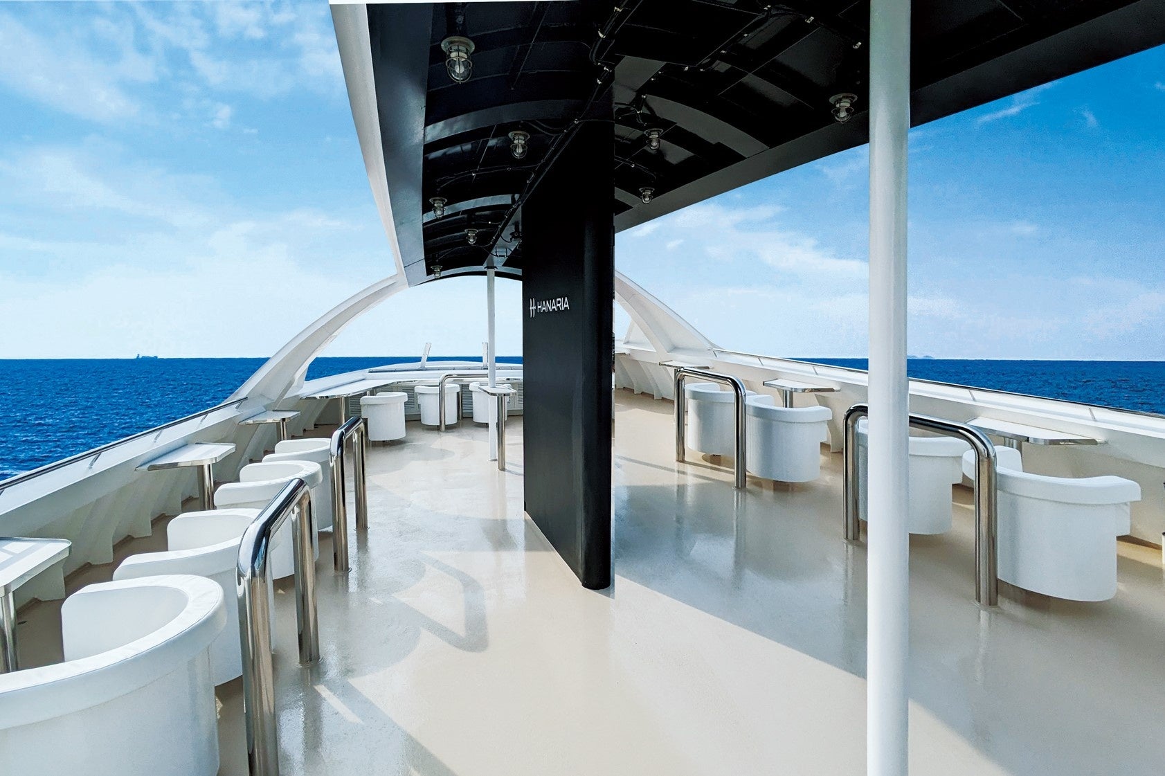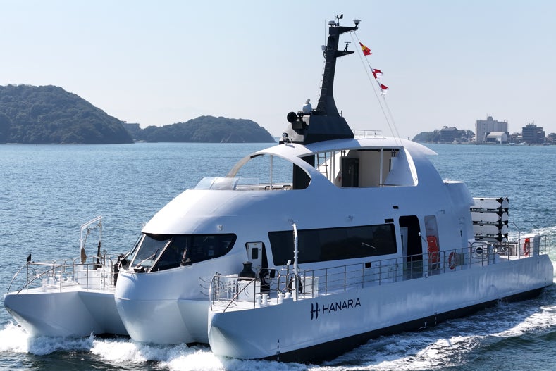 「HANARIA」は、水素とバイオディーゼルを燃料とし、動力源として水素燃料電池、リチウムイオンバッテリー、ディーゼル発電機を組み合わせたハイブリッドシステムを採用しています。このシステムにより、従来の軽油100%使用の船と比較してCO2排出量を約55%削減しています。 振動や騒音が低減され、船内ではゆっくりと会話を楽しむことができ、特にゼロエミッション時には、船の波切音が聞こえるほど静かです。