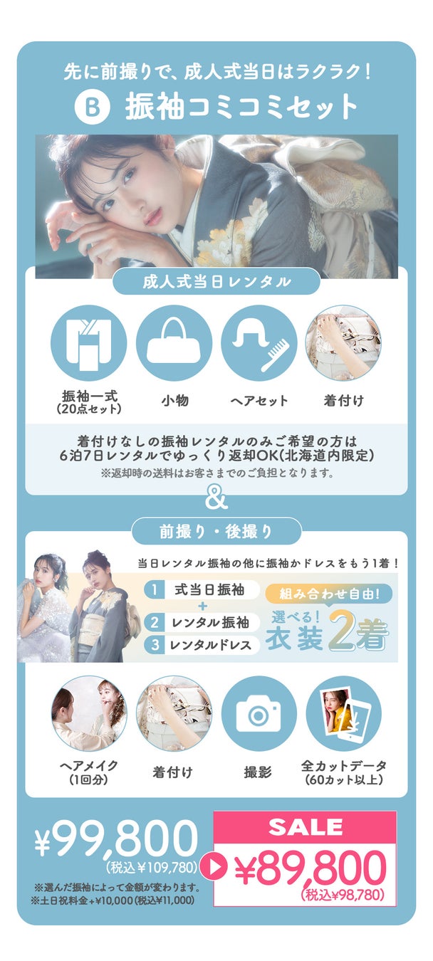 前撮り+成人式当日の振袖レンタルがセットのプラン