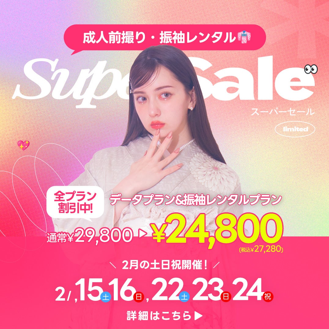 【2月土日祝開催】全プランが割引に。写真工房ぱれっとで成人式前撮り・振袖レンタルが"スーパーセール"